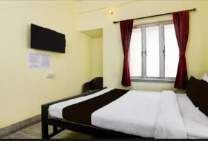 The property offers well-equipped rooms with AC, geyser, Smart TV, and free Wi-Fi, along with two-wheeler parking for added convenience. For guest safety, CCTV surveillance is available in common passages. A complimentary 500 ml water bottle is provided. The property is couple-friendly, welcomes unmarried couples, and accepts local IDs for a smooth check-in.